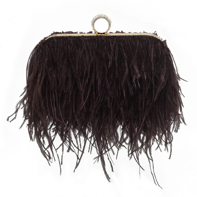 Turn heads with this luxe feather clutch, finished in soft, flowing ostrich feathers for dramatic texture and elegant movement. The structured silhouette keeps it polished, while the sparkling ring handle adds a jewelry-like touch—perfect for parties, weddings, dinners, and night-out looks.