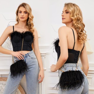 Real ostrich feather exterior: Fluffy, lightweight fringe that sways beautifully as you walk