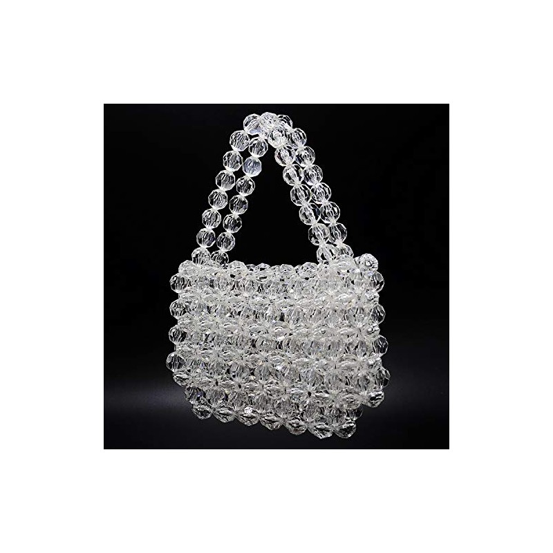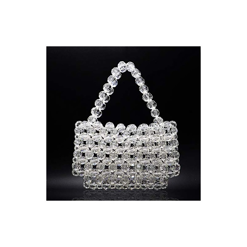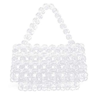 Elegant and light-catching, this clear beaded handbag is crafted with faceted crystal-like beads that shine beautifully under any light. The structured woven design and matching beaded top handle create a polished silhouette that’s perfect for weddings, parties, dinners, and special occasions.
